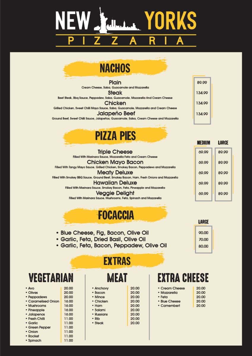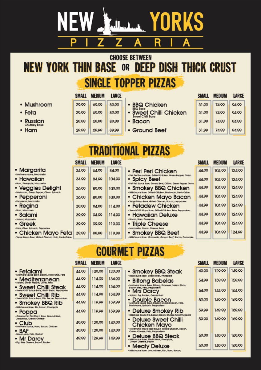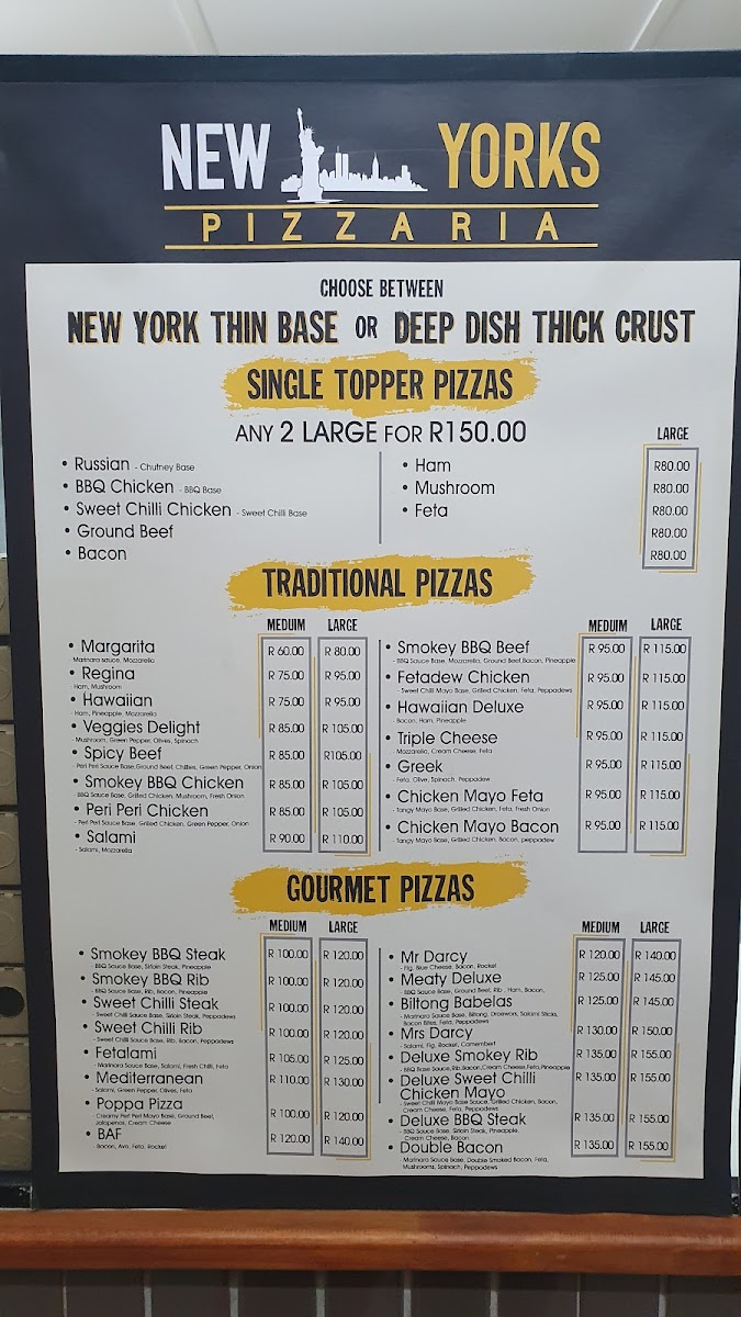 Welcome to NewYorks Pizzaria, a hidden gem located at 66 Church St, Bredasdorp. Here, pizza lovers are in for a treat with their renowned thick base pizzas and mouthwatering subs. Customers rave about the fresh ingredients and vibrant flavor profiles that keep them coming back for more.